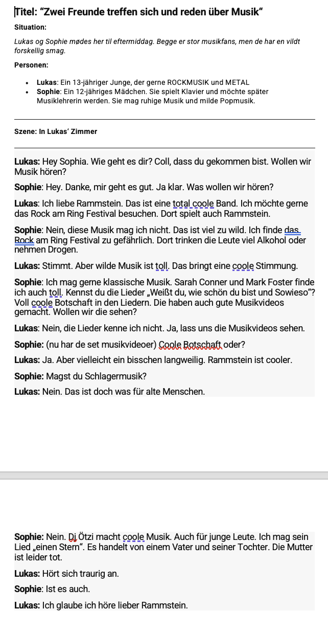 Siehe hier ein paar selbst geschriebene Beispiele aus verschiedenen Alltagssituationen: